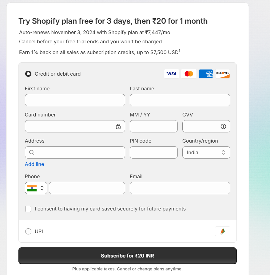 Looking for a way to try Shopify without spending much upfront? Right now, Shopify is offering a special deal: a 3-day free trial, followed by 3 months at just ₹20/month (90 days).