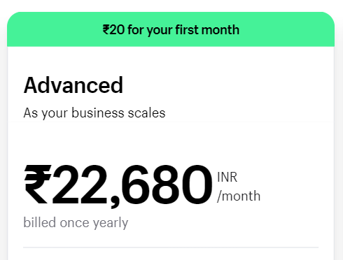 Shopify Advanced costs ₹30,164 per month with a month-to-month subscription. If you opt for annual billing, the price drops to ₹22,680 per month, saving you ₹89,808 per year.